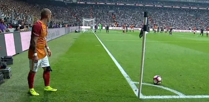 Dakikalar 17'yi gösterdiğinde ise yeniden aynı köşeden korner kullanmaya giden Wesley Sneijder'in aynı şekilde topu çizgi dışına koyduğu görüldü.