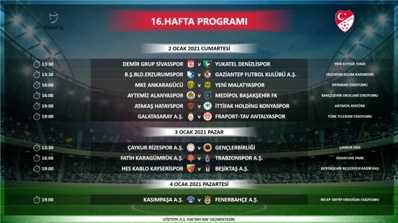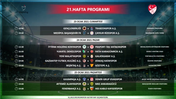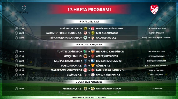Süper Lig'de 19. hafta oynanacak Beşiktaş-Galatasaray derbisinin programı belli oldu. Mücadele 17 Ocak Pazar saat 19.00'da oynanacak.