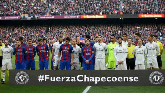 El Clasico öncesi futbolcular, Kolombiya'da uçak kazasında hayatını kaybeden Brezilya ekibi Chapecoense futbol takımı için 1 dakikalık saygı duruşu düzenledi.