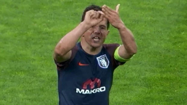 Bu tepkinin ardından sarı kartla cezalandırılan Belözoğlu, el işaretiyle "Yaz bunları" şeklinde bir hareket yaptı.