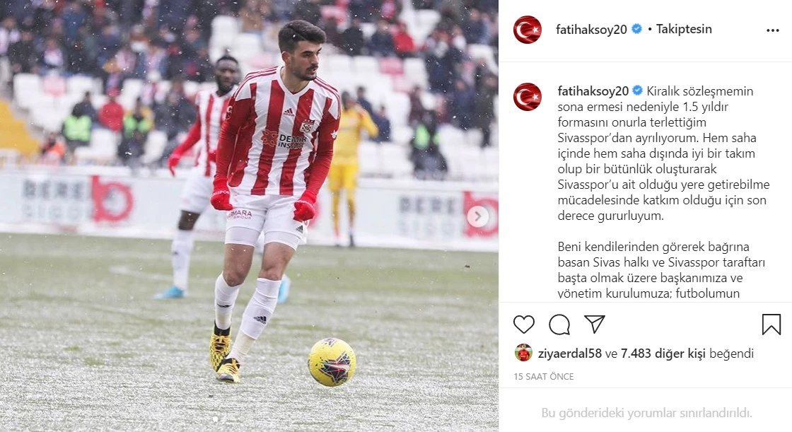 Beşiktaş’a geri dönen Fatih Aksoy, sosyal medya üzerinden Sivasspor formalı fotoğrafını paylaşarak şu ifadeleri kullandı: