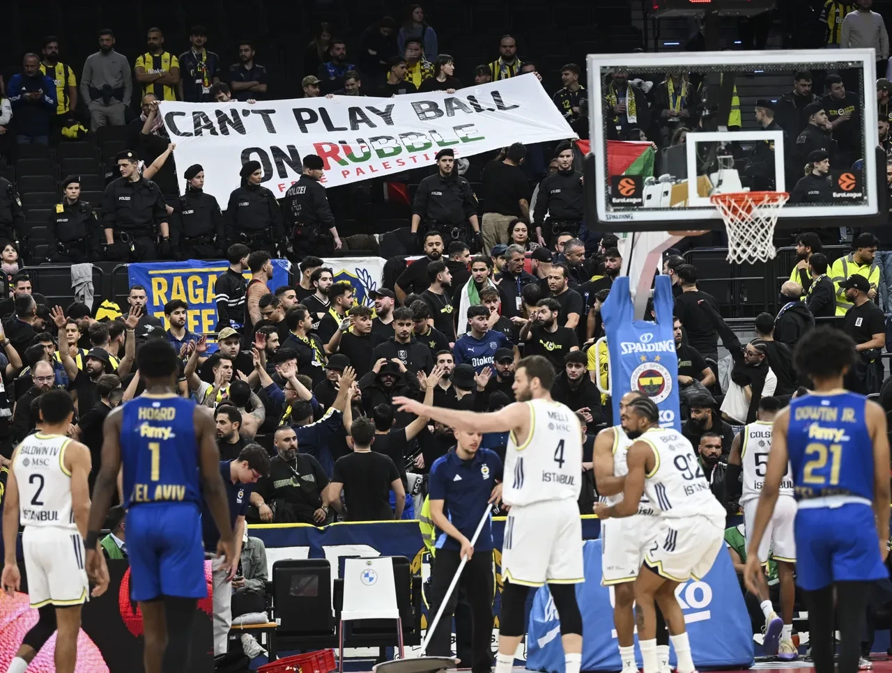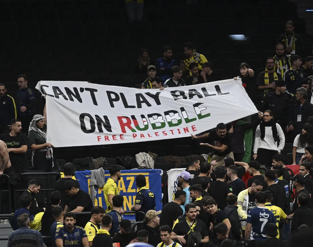 Fenerbahçe Beko, THY Avrupa Ligi'nde Maccabi Rapyd'i 84-75 ile geçti. Güvenlik önlemleri sebebiyle Türkiye yerine Almanya'da oynanan müsabakada, Fenerbahçe taraftarı takımını yalnız bırakmadı. Ayrıca bazı basketbolseverler, tribünde Filistin formasıyla oturdu ve soykırım karşıtı tezahüratlarda bulundu.