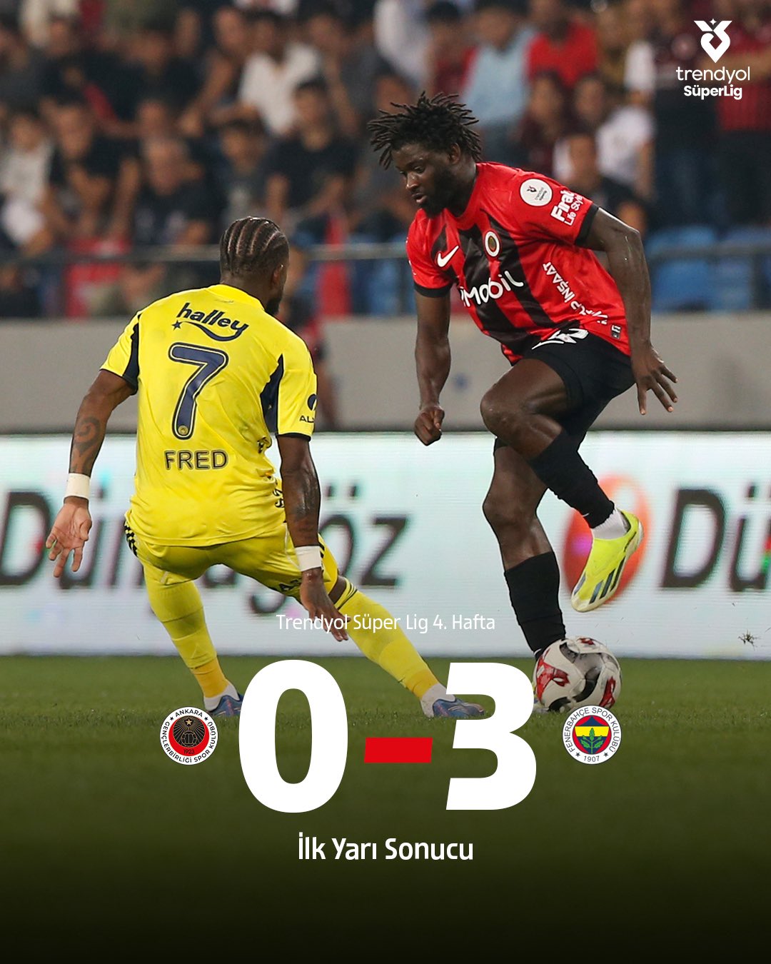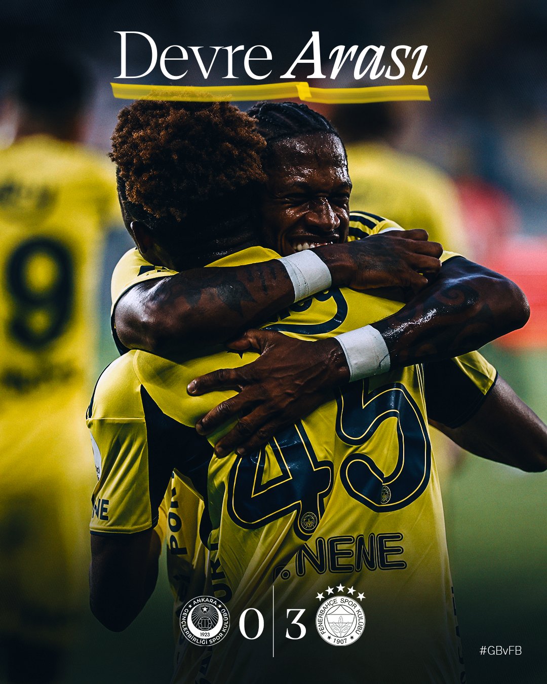 Benfica mağlubiyetiyle Jose Mourinho’yu gönderen Fenerbahçe, Süper Lig’de henüz puan alamamış Gençlerbirliği’ne konuk oldu ve ilk yarıdaki gollerle mutlu sona ulaştı.