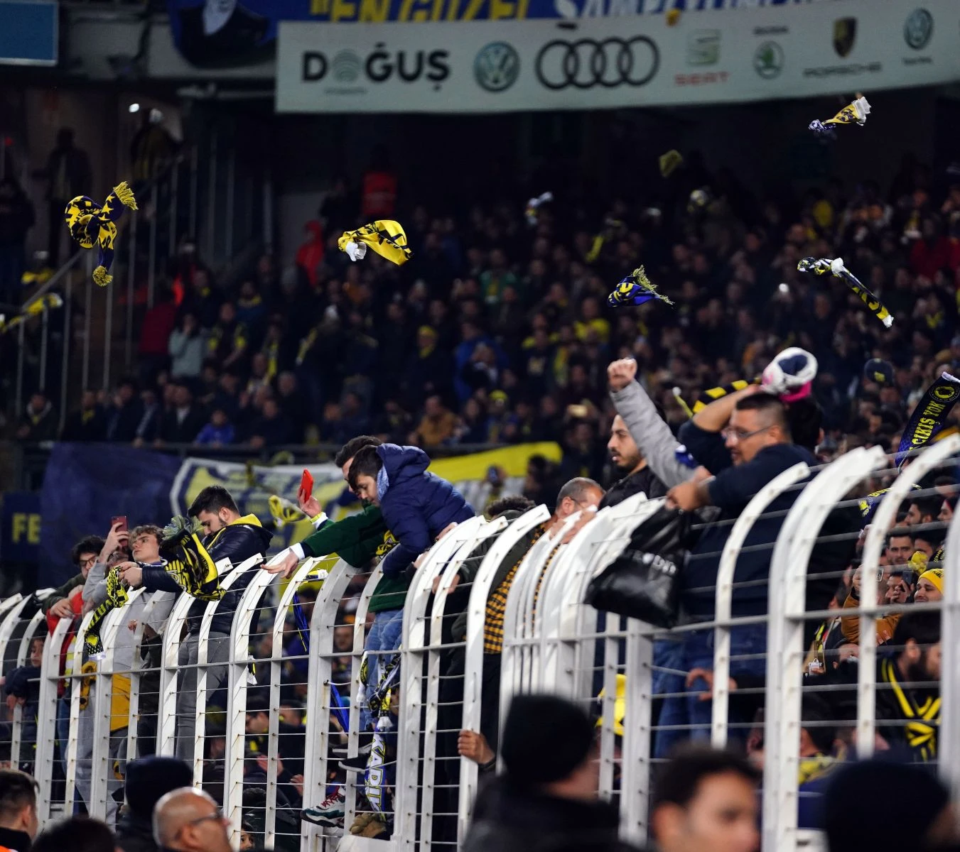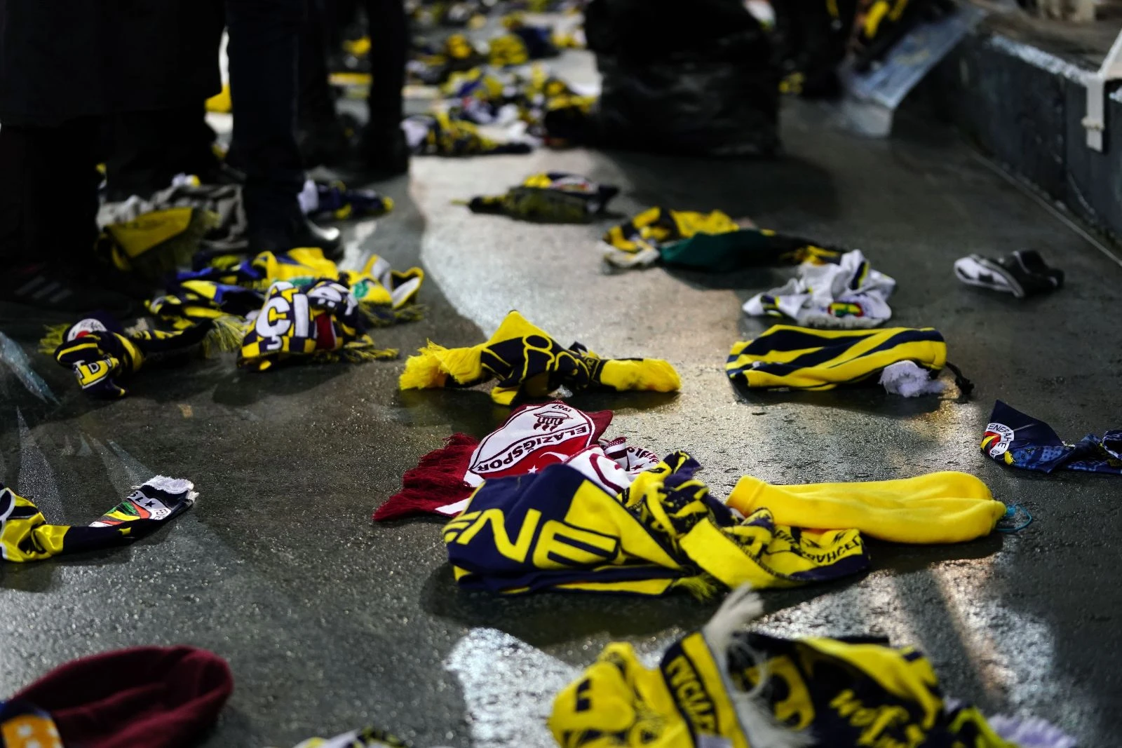 Fenerbahçe ile Başakşehir arasında oynanan müsabakanın uzatma dakikalarında sarı-lacivertli taraftarlar atkılarını sahaya atarak, 'Elazığ üşüme, Fenerbahçe seninle' tezahüratlarında bulundu.