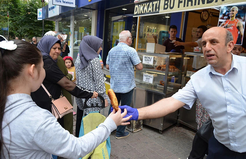Dağıtılan simitlerden alanlar ise fırının işletmecisine teşekkür etti.