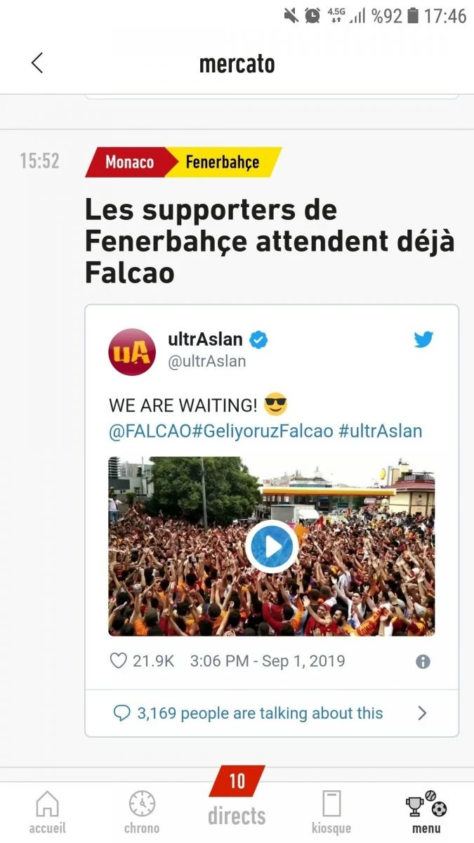 Fransızların spor gazetesi L'Equipe, konuyla ilgili dikkat çeken bir hataya imzasını attı. Gazete internet sitesinden Galatasaraylı taraftarların Falcao'yu karşılamak için toplandıkları yerde çekilen videoyu "Fenerbahçe taraftarları Falcao'yu bekliyor" başlığı ile paylaştı.