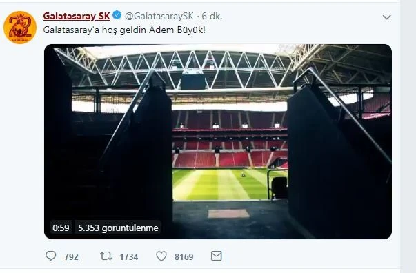 "Profesyonel Futbolcu Adem Büyük ile 2019-2020 futbol sezonundan başlamak üzere 2 sezon için anlaşmaya varılmıştır.