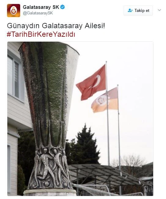 Beşiktaş'ın UEFA Avrupa Ligi'ne veda ettiği günün sabahında ise Galatasaray'ın sosyal medya hesaplarından yapılan paylaşım oldukça tepki topladı. Sarı kırmızılıların hesaplarından her sabah farklı fotoğraflarla yapılan 'Günaydın Galatasaray Ailesi' adlı paylaşımın görselinde bu kez 2000'de kazanılan UEFA Kupası yer alıyordu.