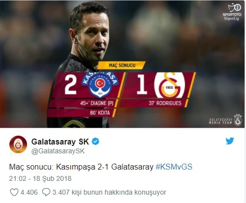 Galatasaray, Kasımpaşa'da liderlik koltuğundan olurken, maç bitiminde sarı-kırmızılı kulübün twitter hesabından maçın hakemi Halis Özkahya ile bir paylaşımda bulunuldu.