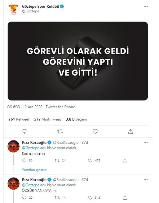 Maçın ardından Göztepeli taraftarlar, maç hakemi Özgür Yankaya'ya sosyal medyadan tepki gösterdi. Sarı-kırmızılı bazı taraftarlar, maçta aleyhlerine verilen 2. penaltı kararında yaşanılan olayın kural hatası olduğunu savundu. Göztepe Spor Kulübü de maçın ardından imalı bir paylaşıma imza attı. Sarı-kırmızılı kulüp, Twitter hesabından "Görevli olarak geldi, görevini yaptı ve gitti" ifadelerinin bulunduğu bir görsel paylaştı. Göztepe'nin bu paylaşımına Göztepe taraftarı olan ünlü oyuncu Rıza Kocaoğlu da "Kim? İsim verin, Özgür Yankaya mı?" şeklinde yanıt verdi. Paylaşım kısa sürede binlerce etkileşim aldı.