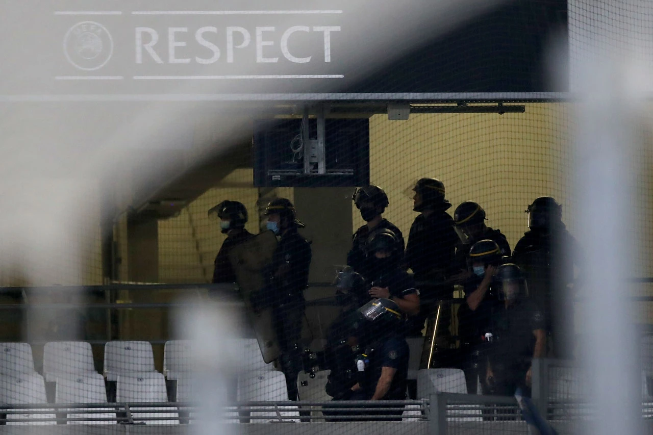 Gerginlik üzerine Fransız polisi, deplasman tribünündeki Galatasaray taraftarına biber gazıyla müdahale etti. Birçok taraftarı yaralandı. Yoğun biber gazı kullanımı ise büyük tepki çekti. Maçın 35. dakikasında maç olaylar sebebiyle durdu. Marsilya taraftarları, Galatasaray tribünlerine meşale atarak saldırgan tutumunu sürdürdü. Teknik direktör Fatih Terim, Galatasaray tribünlerine giderek taraftarlardan sakin olmalarını istedi. Tribünlerin sakinleşmesinin ardından maç kaldığı yerden devam etti. Sosyal medyada vatandaşlar Fransız polisinin çirkin davranışlarına büyük tepki gösterdi.