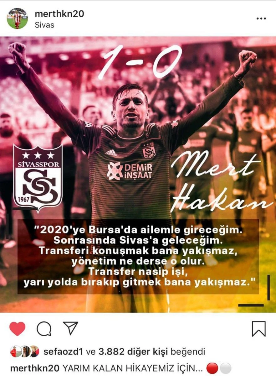 “2020’ye Bursa’da ailemle gireceğim. Sonrasında Sivas’a geleceğim. Transferi konuşmak bana yakışmaz, yönetim ne derse o olur. Transfer nasip işi, yarı yolda bırakıp gitmek bana yakışmaz.”