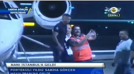 Portekizli yıldızı Sabiha Gökçen Havalimanı'na inen Nani’yi coşkulu bir taraftar grubu karşıladı. Sarı lacivertli taraftarlar da Nani'yi karşılamak için Sabiha Gökçen Havalimanı'na akın etti. Taraftarlar meşaleler yakarak sloganlar eşliğinde Portekizli oyuncuya muhteşem bir karşılama yaptı. Havaalanından zorlukla çıkan Nani, buradan konaklayacağı otele geçti.