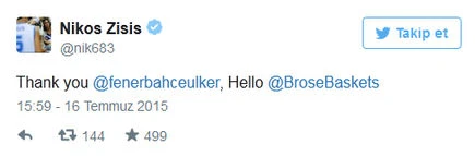 Fenerbahçe Ülker'de forma giyen Nikos Zisis, Almanya Ligi ekiplerinden Brose Basket Bamberg ile el sıkıştı.Yunan oyuncu bu gelişmeyi Twitter hesabından duyurdu.