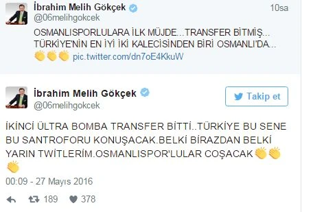 Gökçek ayrıca Osmanlıspor'un önemli bir santrafor transferini bitirmek üzere olduğunu da açıkladı. "İkinci ultra bomba transfer bitti! Türkiye bu sene bu santraforu konuşacak" diyen Gökçek, bu futbolcunun ismini de en kısa zamanda açıklayacağını ve Osmanlısporluları coşturacağını ifade etti.