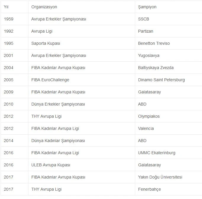 İstanbul'da basketbolda yapılan final organizasyonları şöyle: