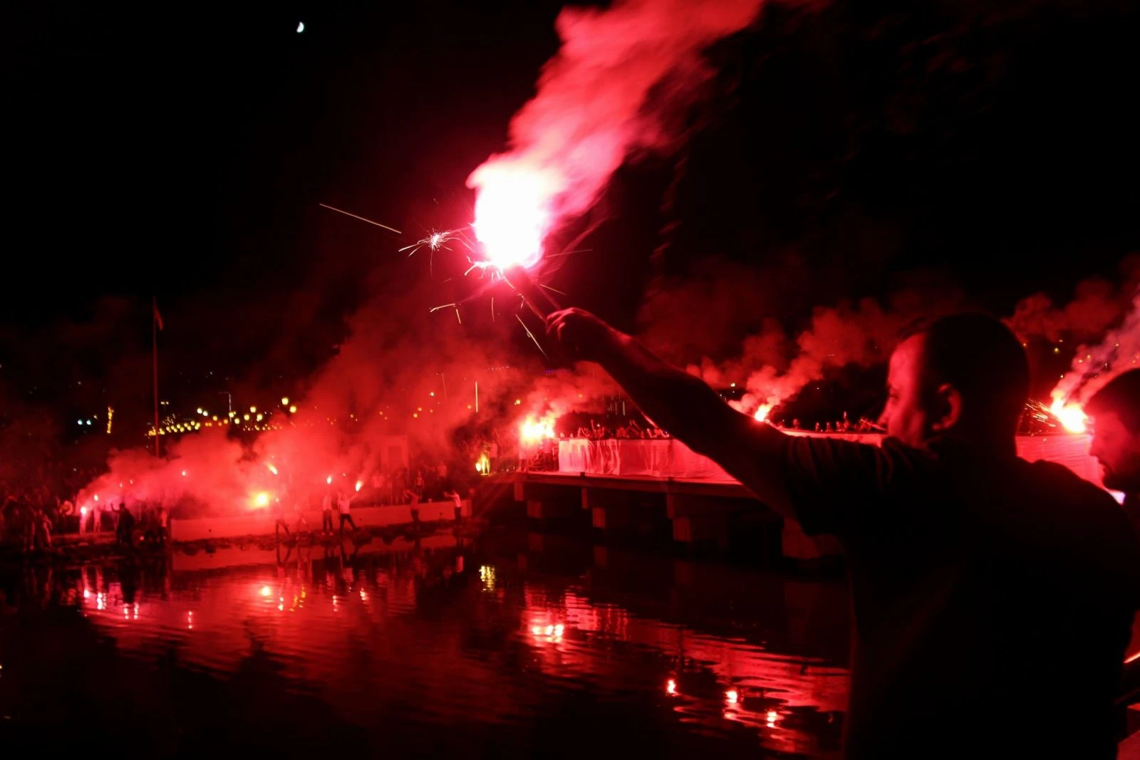 Yaklaşık bin meşalenin yakıldığı gösteriler, marşlarla ve eğlencelerle gece geç saatlere kadar sürdü.
