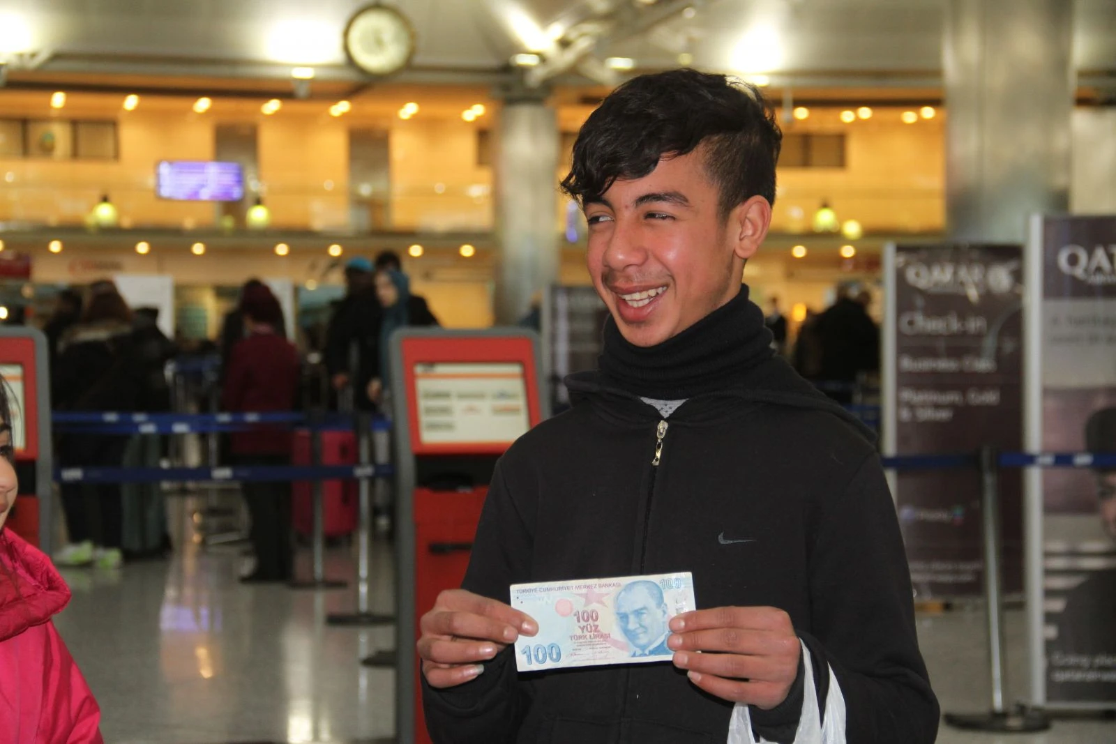 Slimani'nin para verdiği Suriyeli Hasan, ”Ara sıra geliyoruz. Arapça biliyor kendisi. Yüz lira verdi. Biz arada sırada geliyoruz. Burada mendil satıyoruz. Arap kontuarlarına gidiyoruz. Biz Suriyeli'yiz. Allah'a şükür. Bazen çok veriyorlar bazen az. Şansa göre” dedi.