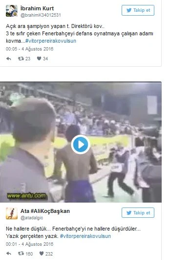 Karşılaşmanın ardından Twitter'da en çok konuşulan konu Fenerbahçe Teknik Direktörü Vitor Pereira oldu. Pereira için açılan "#vitorpereirakovulsun" etiketine binlerce mesaj yağdı.