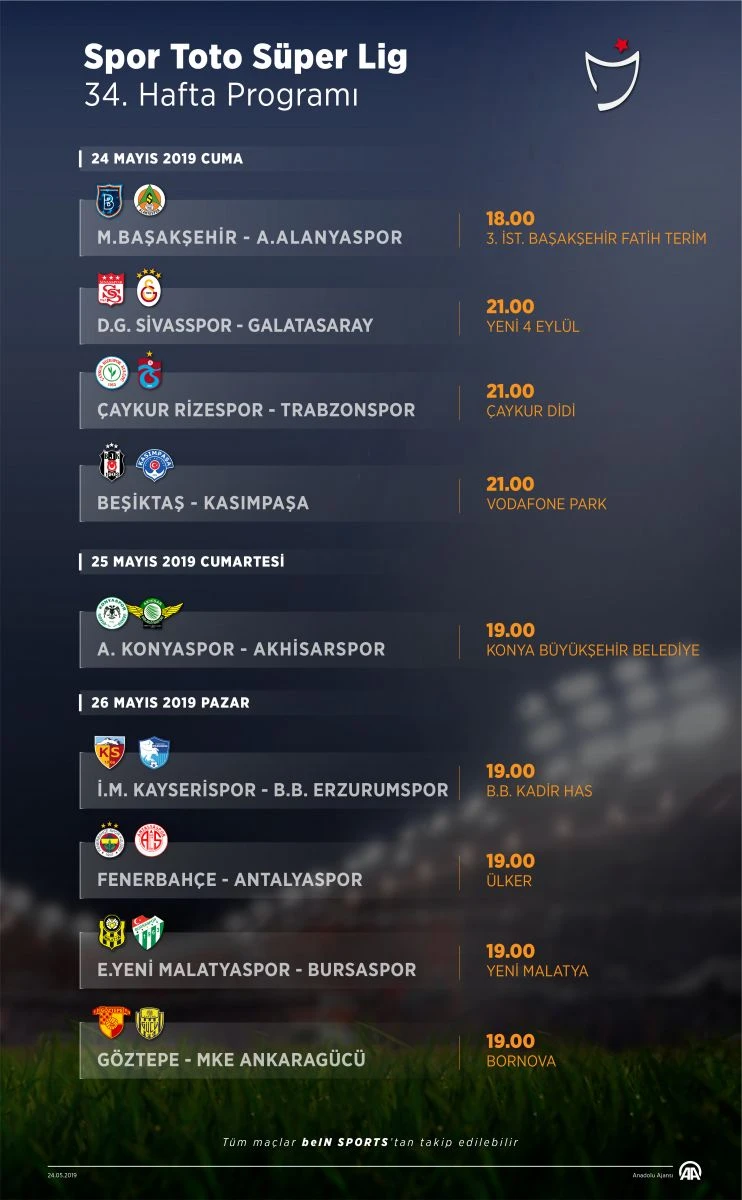 18.00 Medipol Başakşehir-Aytemiz Alanyaspor (3. İstanbul Başakşehir Fatih Terim)