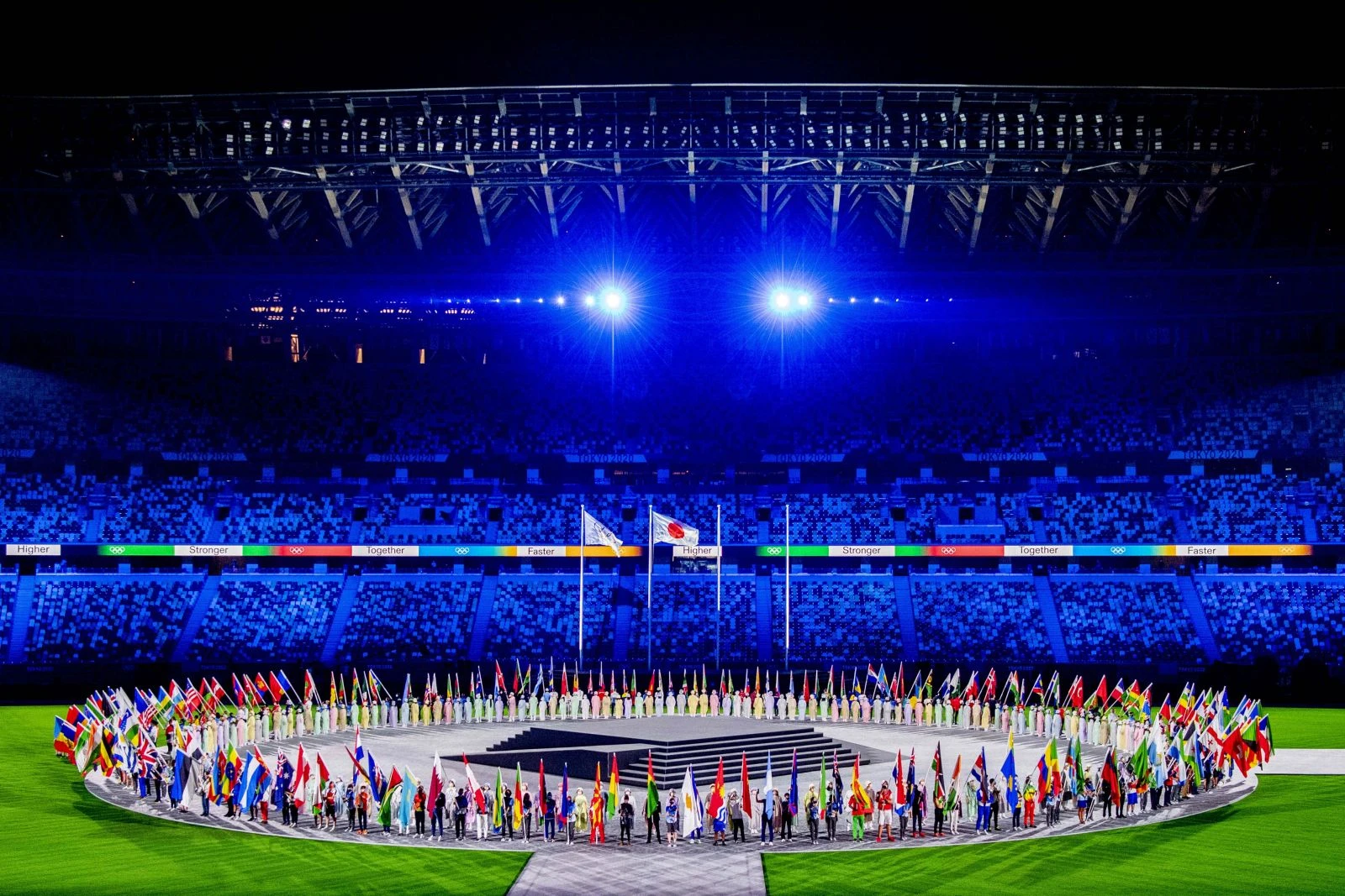 Olimpiyat bayrağı oyunlar 2024'te Paris'te düzenleneceği için Fransa'ya teslim edildi. Tokyo Valisi Yuriko Koike olimpiyat bayrağını Uluslararası Olimpiyat Komitesi (IOC) Başkanı Thomas Bach'e verdi. Bach ise bayrağı 2024 Olimpiyat Oyunları'na ev sahipliği yapacak Fransa'nın başkenti Paris'in belediye başkanı Anne Hidalgo'ya devretti. Devir töreninden sonra Fransa'nın milli marşı çalındı ve Paris'in tanıtımı stadın ekranlarına yansıtıldı.