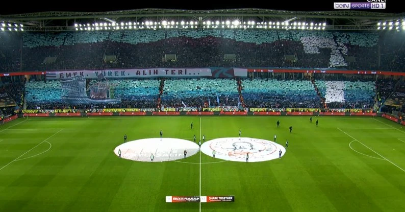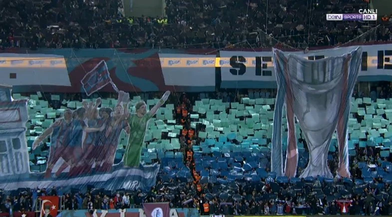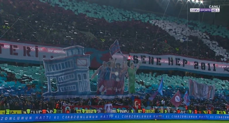 Bordo-mavili taraftarlar, karşılaşma öncesi muhteşem bir koreografi yaptı.