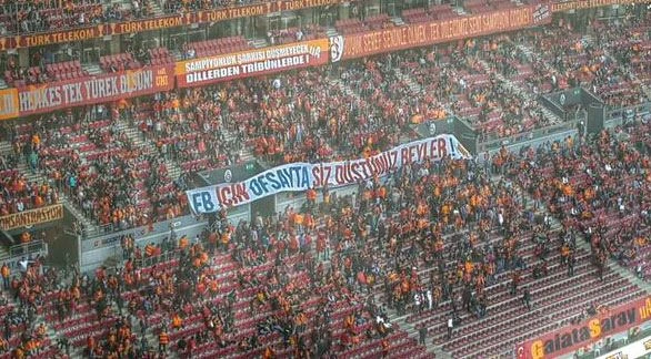 Süper Lig'de Galatasaray ile Gaziantepspor arasındaki maçtan önce sarı-kırmızılı taraftarlar gündeme oturacak bir pankartın altına imza attı. Geçen hafta Fenerbahçe ile Bursaspor arasında oynanan maçta Bursaspor'un golünün verilmediği iddiası ve yayıncı kuruluş LİG TV'nin piero'da pozisyonu 11 cm ofsayt göstermesi tartışmaların daha da körüklenmesine neden olmuştu. Galatasaray taraftarı geçen hafta kamuoyunu meşgul eden konuları unutmadı ve TT Arena'da Galatasaray taraftarı, "Şansal, Denizli, Tümer... FB için yayına" ve "FB için ofsayta siz düştünüz beyler" yazılı pankartlar açtı. Maçın başlamasına kısa bir süre kala Lig TV de bu pankartları ekrana getirdi.