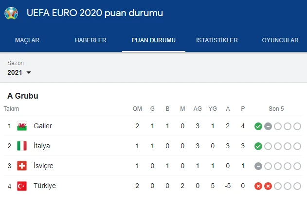 A Milli Takımımızın EURO 2020’De Galler ile yaptığımız maç gruptan çıkmak adına çok kritikti. Ama kritik maçı A Milli takım 2-0 yenilerek elindeki çok büyü bir şansı kaybetti. Artık son maçta alaçağımız galibiyet ile A Milli takım için gruplar arası en iyi 3'üncü takım ihimalini değerlendirecek...