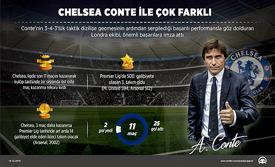 Sezona 4-3-3 sistemiyle başlayan Chelsea Teknik Direktörü Antonio Conte'nin 3-4-3'e dönmesinin ardından Sırp futbolcu Nemanja Matic ile Kante'nin performansı, savunmanın önündeki tek futbolcu olarak görev yaptığı ilk haftalara göre etkili şekilde arttı.