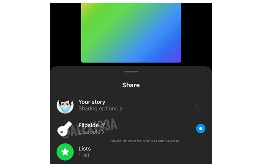 Ayrıca, hikaye veya gönderi paylaşırken, yakın arkadaşlar özelliğindeki gibi Flipside profilinizi seçebileceksiniz. Ayrıca, Flipside'ın kendine ait bir mesaj kutusu da olacak. Merak etmeyin, Flipside profilleri Instagram topluluk kurallarına uymaya devam edecek. Bu nedenle, müstehcen içerikler veya cinsellik odaklı sohbetler yasak olacak.