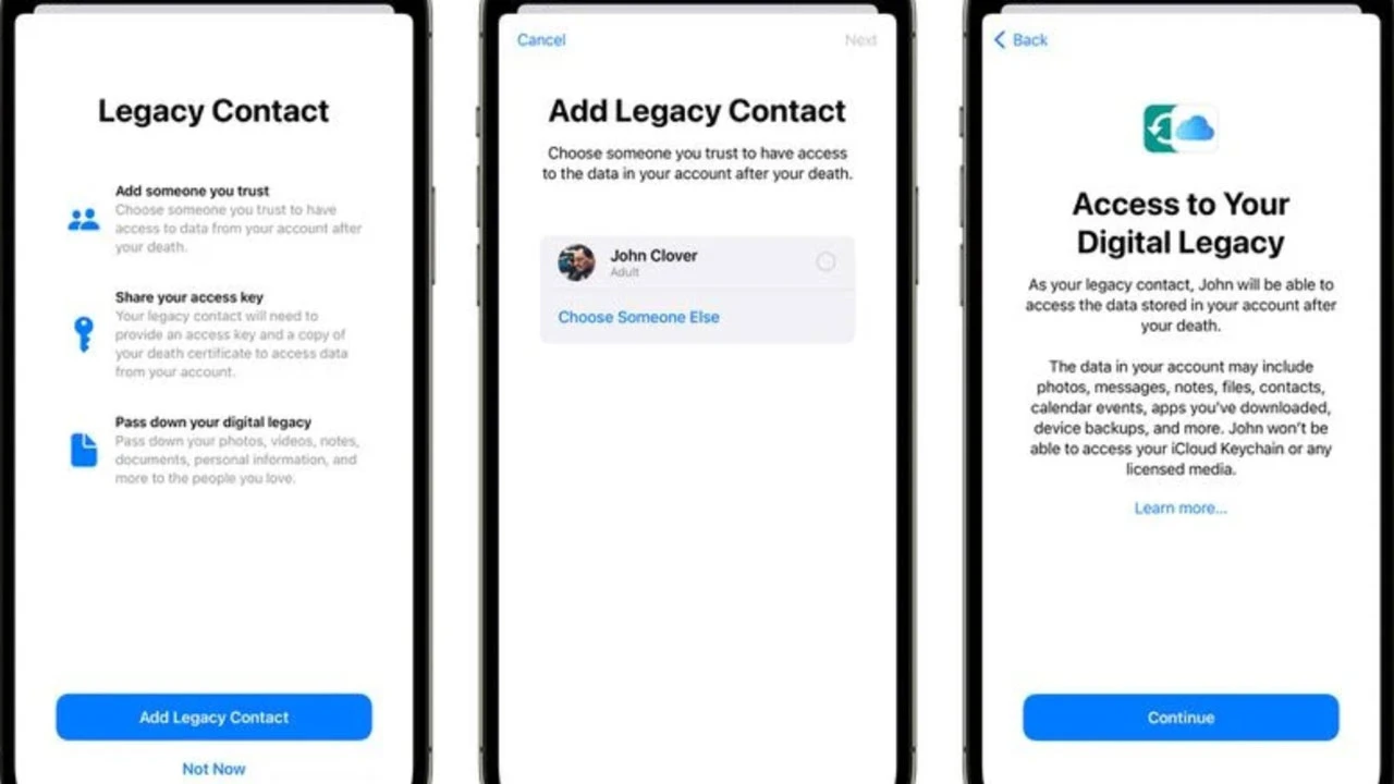 Apple'ın cihazlara yeni gönderdiği bir özellik büyük ses getirdi. “Legacy Contact” isimli özellik kullanıcının ölmesi durumunda verilerine ne olacağını gösteriyor. Apple, kullanıcılardan Apple Kimliği ve Dijital Miras verilerini paylaşmak istediği beş kişiyi seçmesini istiyor. Kullanıcının ölmesi halinde seçtiği kişiler fotoğraflara, mesajlara, notlara, dosyalara, kişilera, takvim etkinliklerine, uygulamalara, cihaz yedeklemelerine ve birçok veriye erişebilecek.