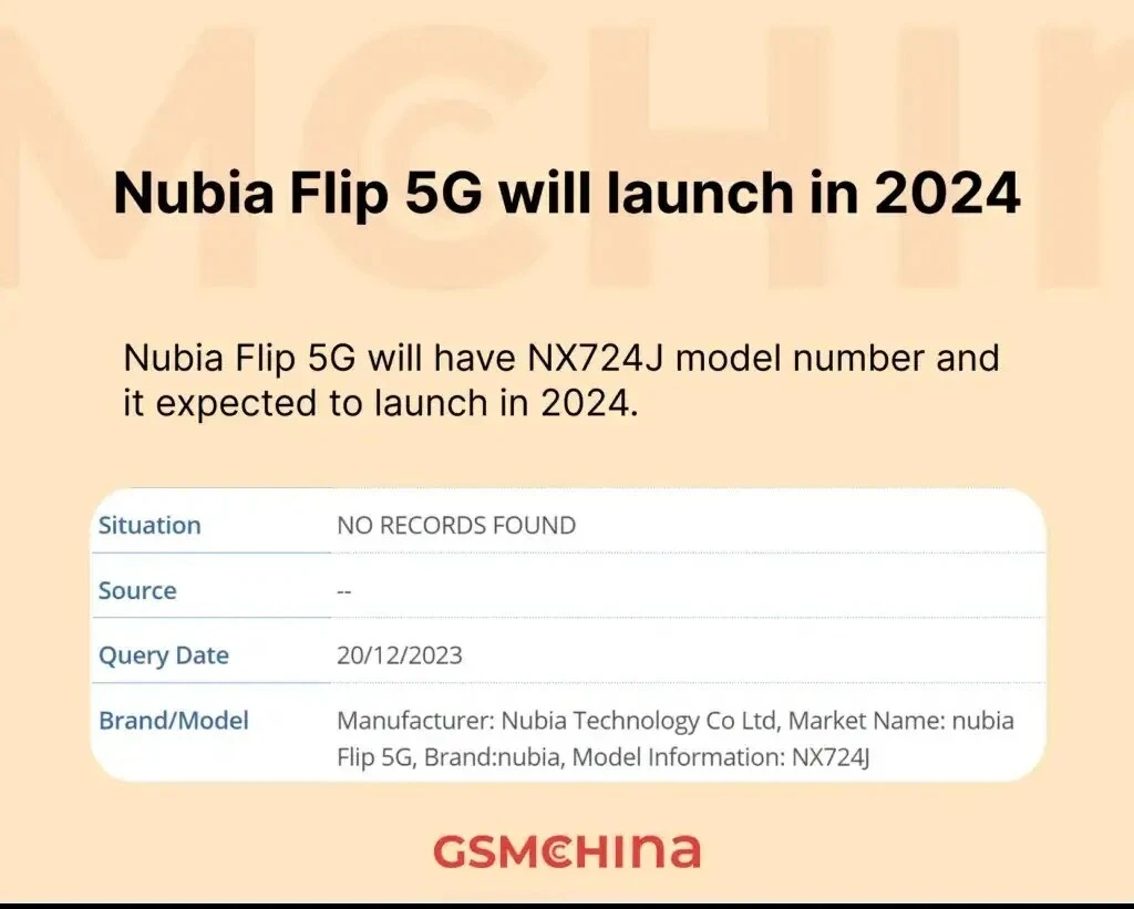 Öta yandan IMEI veri tabanında görülen Nubia Flip 5G, NX724J model numarasıyla gelecek ve gücünü de Qualcomm Snapdragon 8 Gen 3 işlemciden alacak.