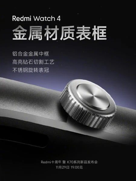 Redmi Watch 4, 29 Kasım’da Redmi K70 serisiyle birlikte piyasaya sürülecek.