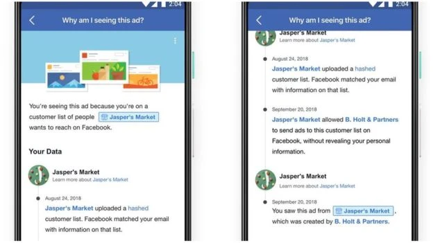 Platform kullanıcıların Facebook profillerinin reklam verenlerin veri tabanına uyup uymadığını da gösterecek.