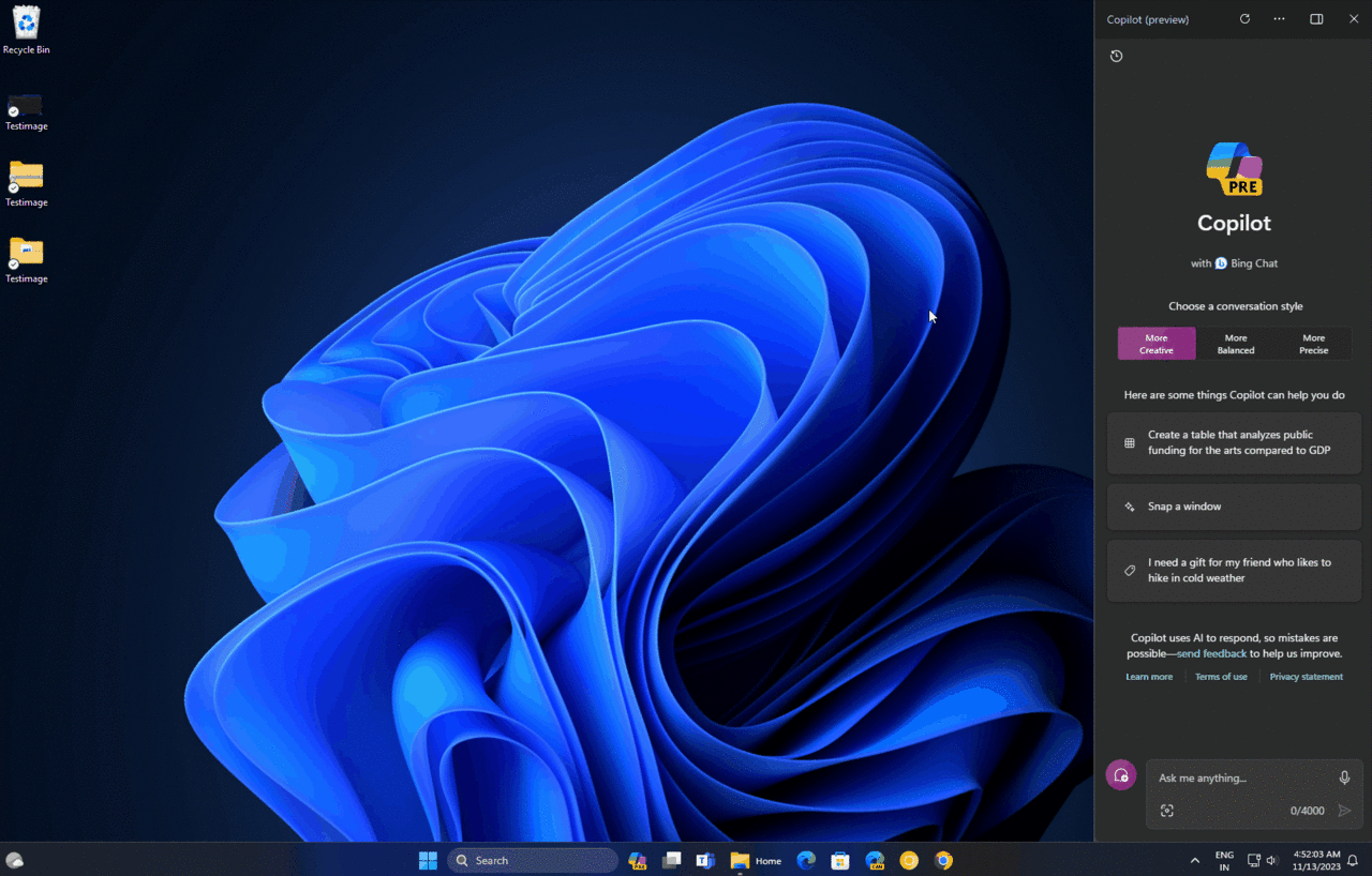 Şu anda Copilot yeniden boyutlandırılamıyor veya sabitlemesi kaldırılamıyor; yani bu Windows’ta yan tarafta sabit bir şekilde duruyor. Bir sonraki güncelleme ile sabitlemeyi kaldırabileceksiniz.