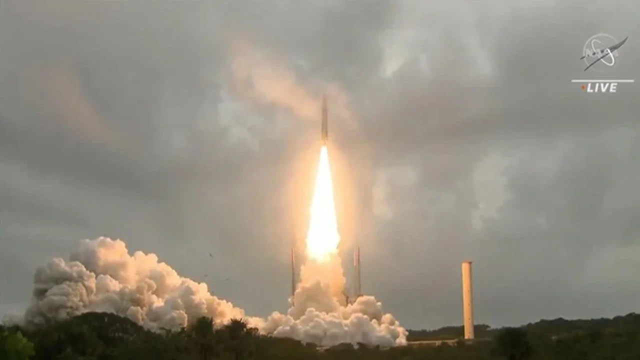 James Webb Uzay Teleskobu, Avrupa Uzay Ajansı'nın (ESA) geliştirdiği Ariane 5 roketine yerleştirilerek yolculuk için uzaya fırlatıldı.