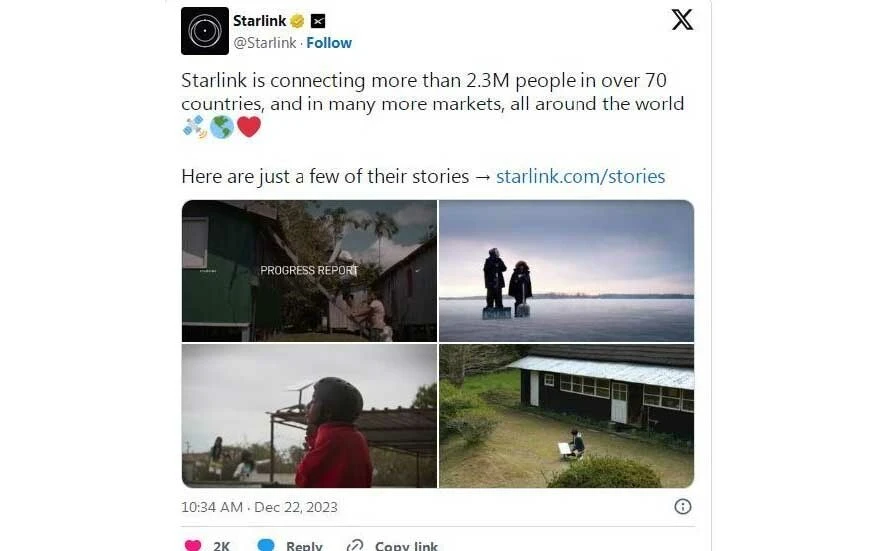 Starlink'in X üzerinden yaptığı paylaşıma göre hizmetin küresel kullanıcı saysının 2,3 milyonu aştığı duyuruldu.