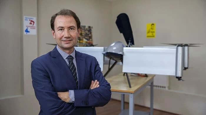 "Aracımız döner kanatlı yapıya sahip. Kanatların dik pozisyonunda dikine iniş-kalkış yapabiliyor. Düz uçuşa geçtiğinde ise kanatlar yatay pozisyona geçerek sabit kanatlı uçak modunda uçabiliyor. Avantajı, sabit kanatlı uçak ile helikopterin uçuşlarının avantajlarını bir arada görebiliyorsunuz. Sabit kanatlı bir aracın ihtiyaç duyduğu bir piste ihtiyacı yok. Aynı zamanda bir helikopter gibi iniş-kalkış yapabiliyor. Düz uçuş moduna geçtiği zaman sabit kanadın oluşturduğu kaldırma kuvvetinden faydalanarak helikopterlere göre daha uzun mesafelerde uçuş gerçekleştirebiliyor. Bu özel ve zor bir problem. Geçiş modları dediğimiz, kanadın dikeyden yataya geçişinde ve sert rüzgarlar altında uçağı stabil tutabilmek ve uçurabilmek çok ciddi mühendislik birikimi gerektiriyor. Firmamızda ortalama 16 yıllık tecrübeye sahip önemli bir kadromuz var. Onların kabiliyetleri neticesinde bu seviyelere gelebildik."