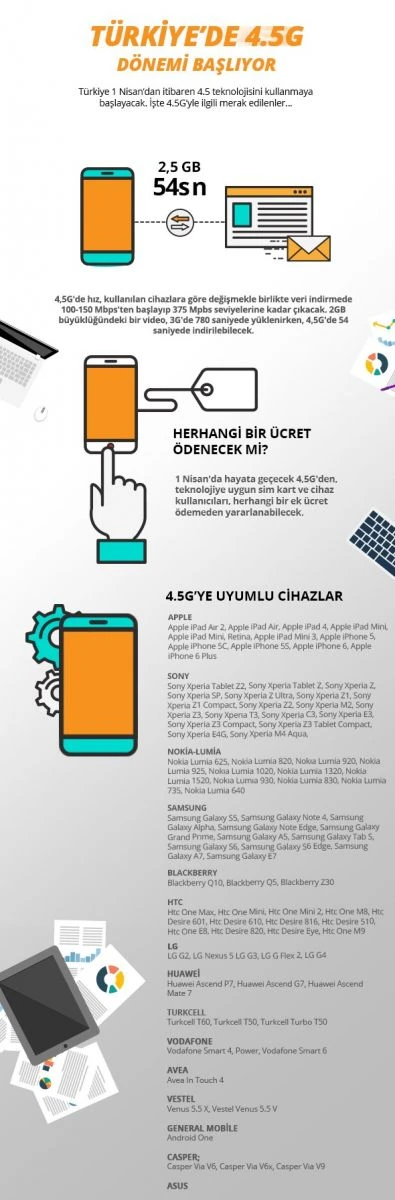 GSM operatörleri tarafından 1 Nisan itibarıyla abonelerin kullanımına sunulacak olan 4,5G teknolojisi ile mobil data iletişiminde hız rekorları kıracak.