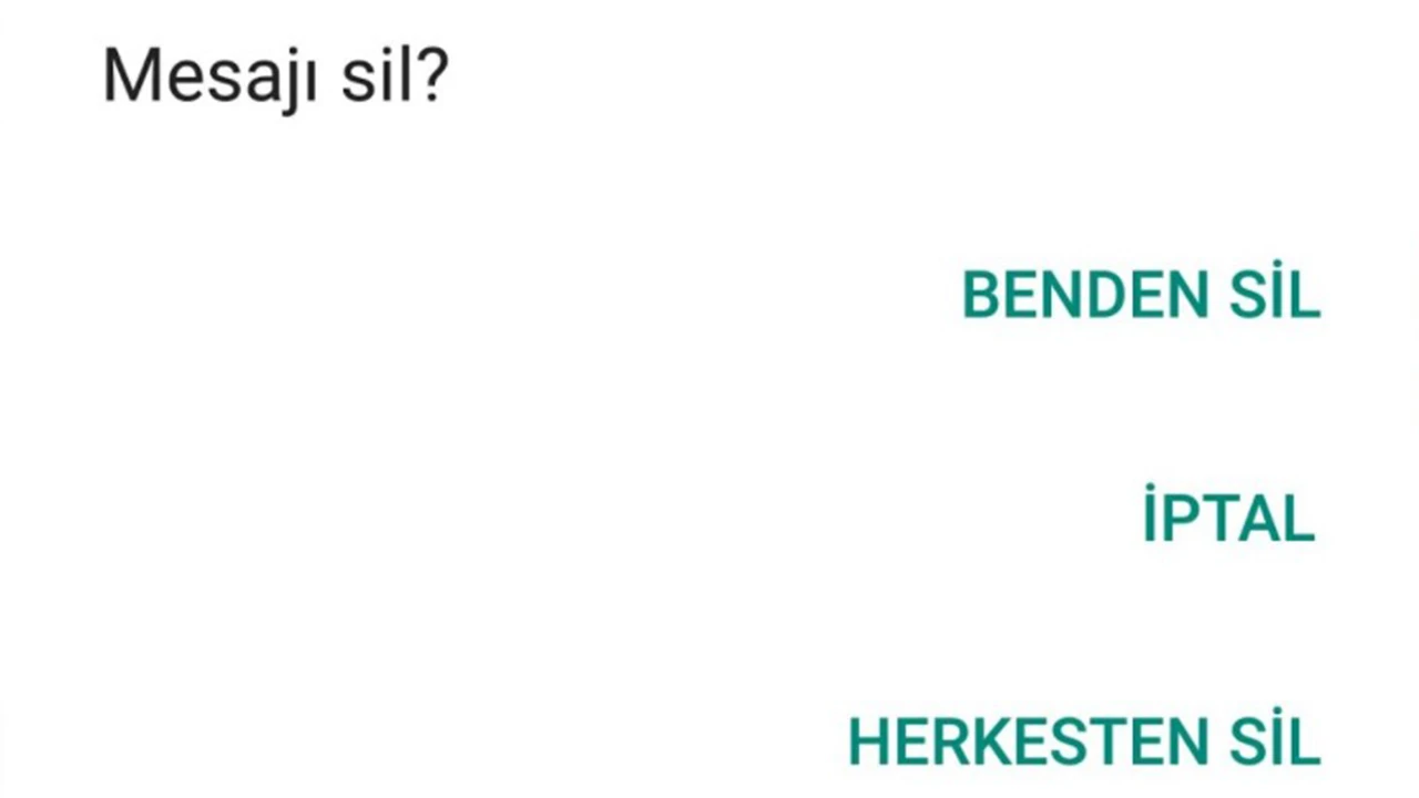 Whatsapp'taki sohbetinizde, mesajları herkesten veya sadece kendinizden silebilirsiniz.