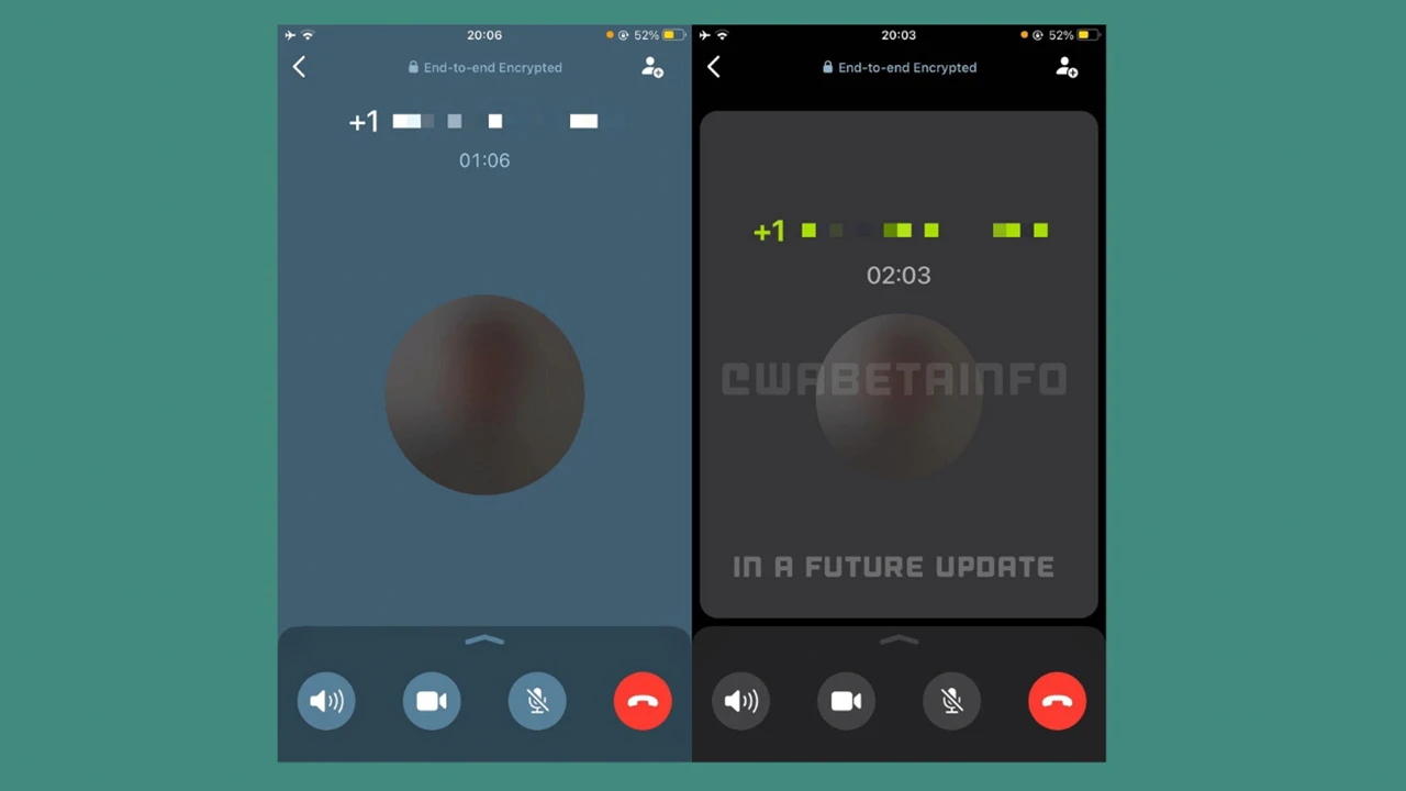 Bununla birlikte, WABetaInfo'nun paylaştığı ekran görüntülerine göre, uçtan uca şifreleme sesli görüşmelerde de yer alıyor. Test aşamasında olduğu için arayüzde değişikliklerin yapılması muhtemel görünüyor. Ayrıca yeni arayüz hakkındaki yorumlar daha modern ve daha gösterişli olduğu yönünde.