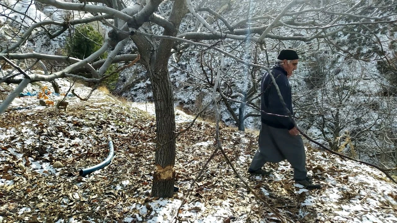 74 yaşındaki Abuzer Alkan ömrünü verdiği ceviz bahçesinde bulunan 150 ceviz ağacından 100’ünün balta ile kesildiğini gördü. Kimliği belirsiz kişi veya kişiler tarafından kesilen 100’e yakın ceviz ağacının kesildiğini Abuzer Alkan’a komşuları haber verdi.