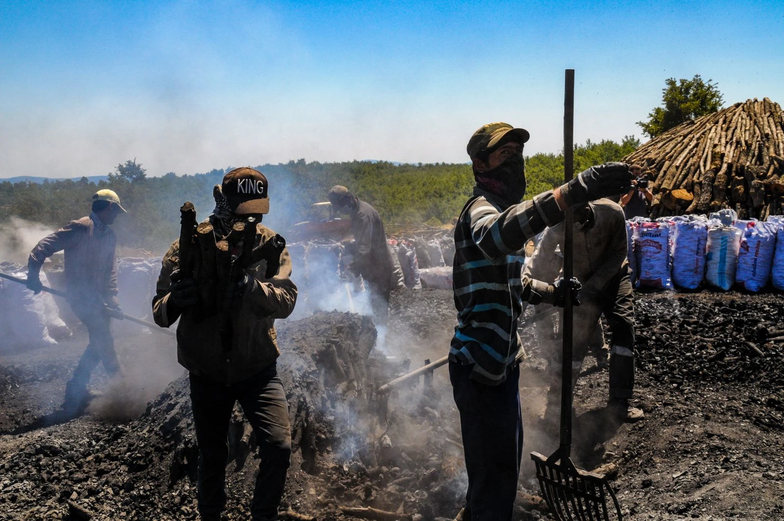 Diyarbakır’dan Eskişehir’in Sarıcakaya ilçesindeki Bey Yaylası’na gelen mevsimlik işçiler, meşe odunlarından mangal kömürü üretiyor. Önce toplanan odun parçaları günlerce süren çalışmanın ardından tepe şeklinde diziliyor. Daha sonra üzeri saman ve toprakla kaplanan odun tepeleri mangal kömürü elde edilmek için tam 1 ay boyunca içten yakılıyor. Ormanlık alanda yapılan işlemler sırasında yangın çıkmaması için de gece-gündüz nöbet tutuluyor. Kömürleri parçalayıp çuvallara dizen işçiler, yoğun duman ve sıcaklık altında günde 13-14 saat çalışıyor.