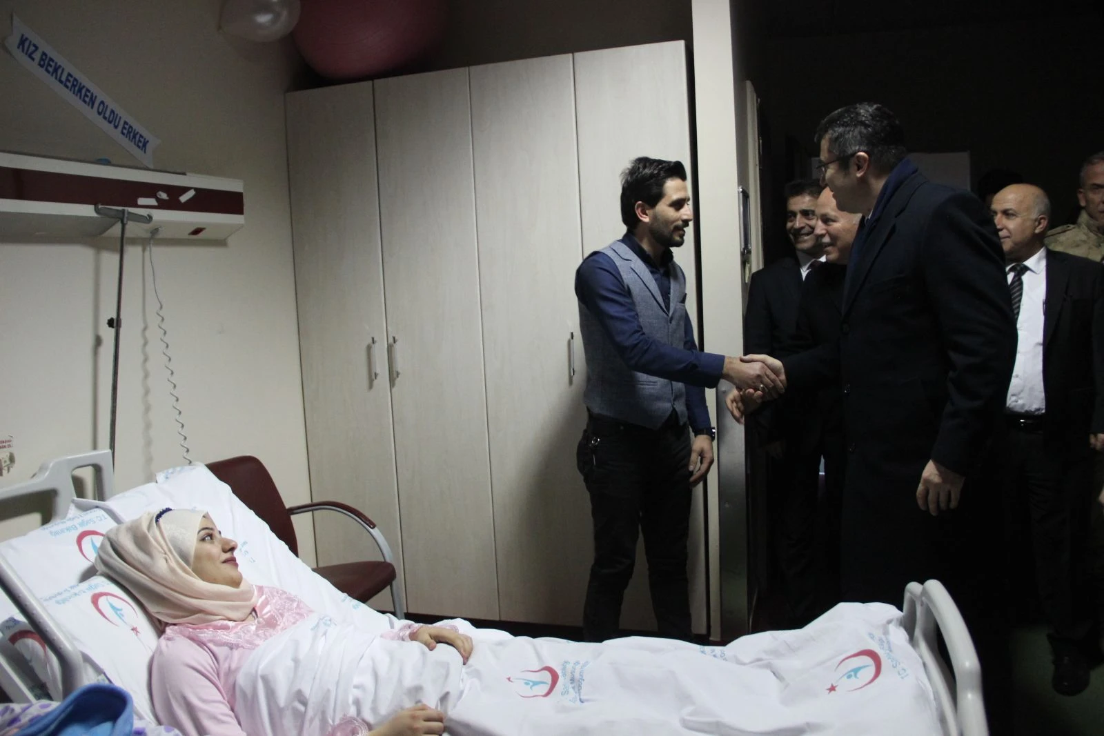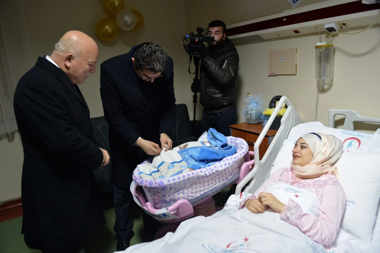 Erzurum Valisi Okay Memiş, Erzurum Büyükşehir Belediye Başkanı Mehmet Sekmen ve protokol üyeleri yılbaşı nedeniyle çifti hastanede ziyaret ederek yeni doğan bebeğe altın taktı.