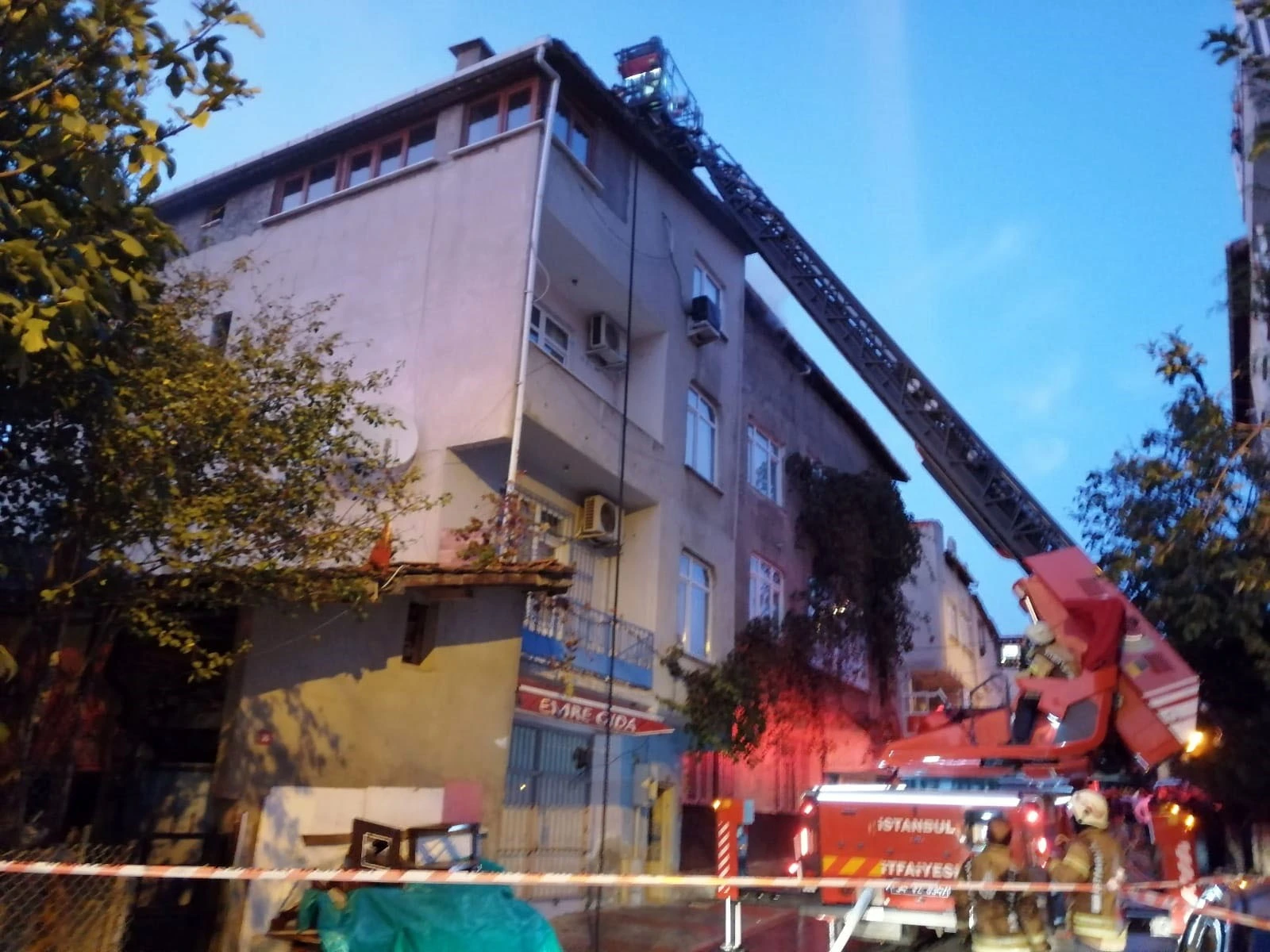 Öte yandan, binanın çatısının alevlere teslim olduğu anlar cep telefonu kamerasına yansıdı. Görüntülerde binanın çatısı alev alev yanıyor ve çevreye duman yayılıyor. İtfaiye yangına müdahale ediyor.
