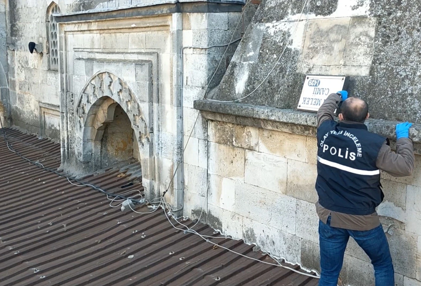 Edirne’de Osmanlı döneminde Rumeli beylerbeyi olan Şah Melek Paşa tarafından 1429 yılında yaptırılan Şahmelek Camisi'ne zarar veren kişi ardından caminin dış cephesine kasketini asıp kayıplara karıştı.