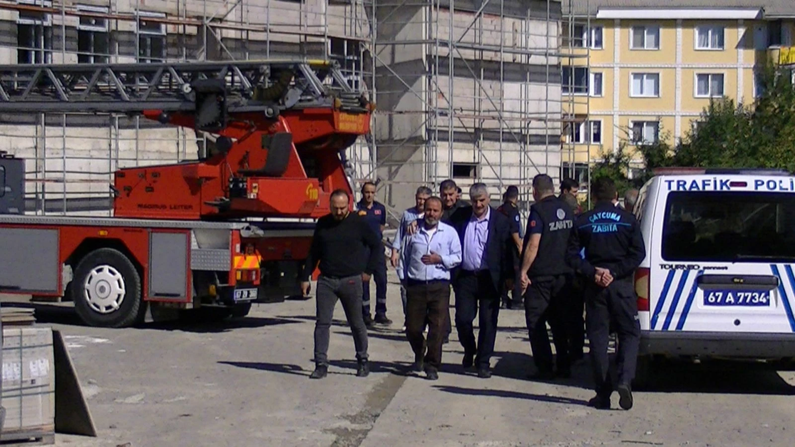 İnşaat firmasını temsilen gelen personel, basına çekim yaptırmamak için uğraş verdi. Bu esnada zabıta ekipleri ve Çaycuma itfaiyesi olası durum için hazırda bulundu. Emniyet ekipleri çatıya çıkarak işçileri ikna etmeye çalıştı.