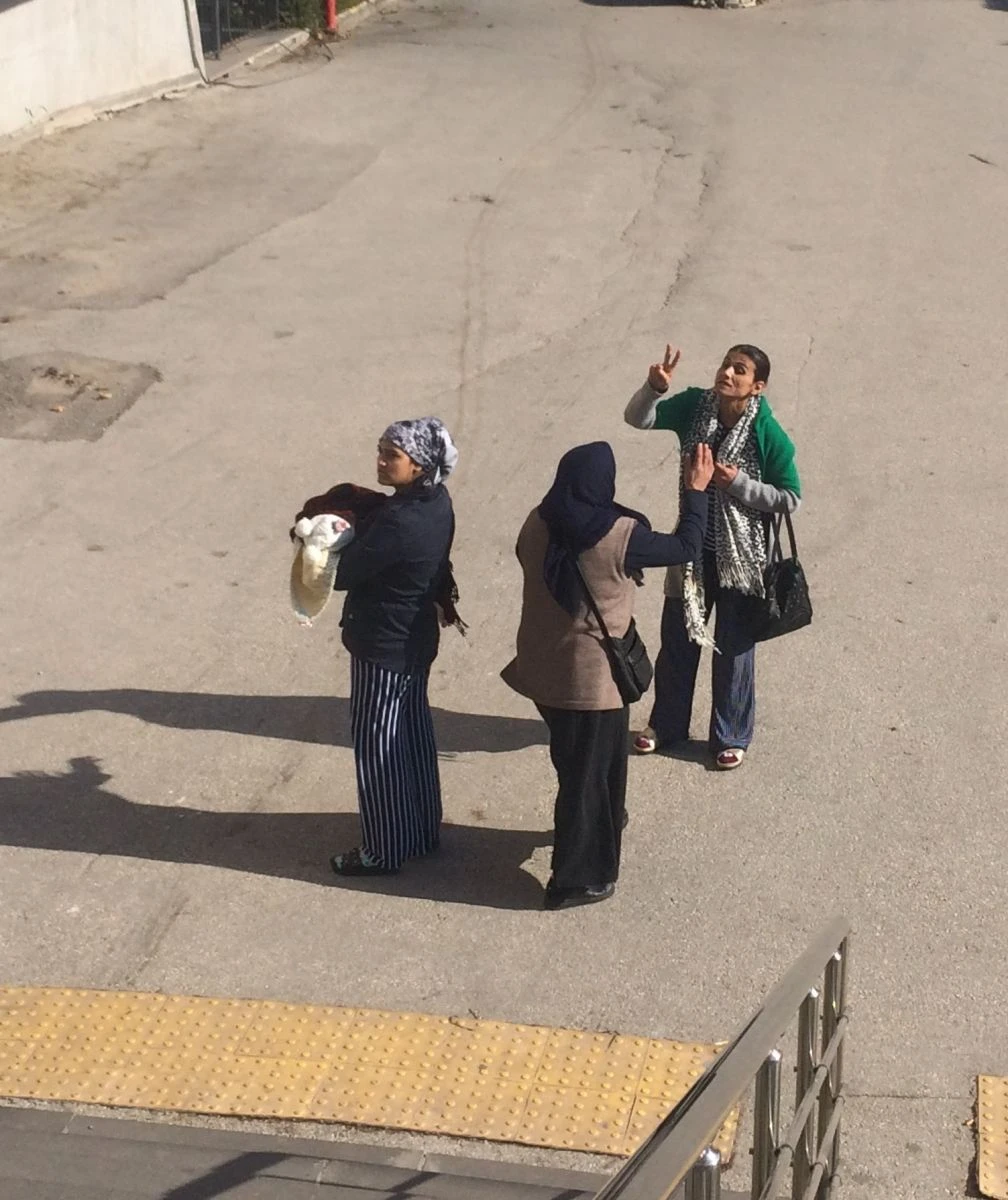 Adliye polisi, şahısları uzaklaştırmak için uyarıda bulundu. Polisler, kadını uzaklaştırmaya çalıştığı sırada babası olduğu iddia edilen bir şahıs nöbetçi polisin üstüne yürüdü. Yaşanan tartışmadan sonra takviye olarak gelen ekipler, polislere zorluk çıkaran şahısları adliye önünden uzaklaştırdı.