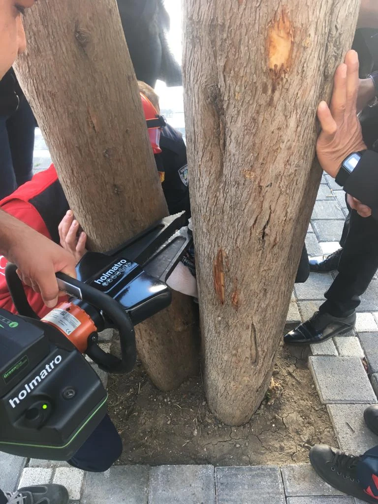 AĞACA TIRMANMAK İSTERKEN BACAĞI SIKIŞTI