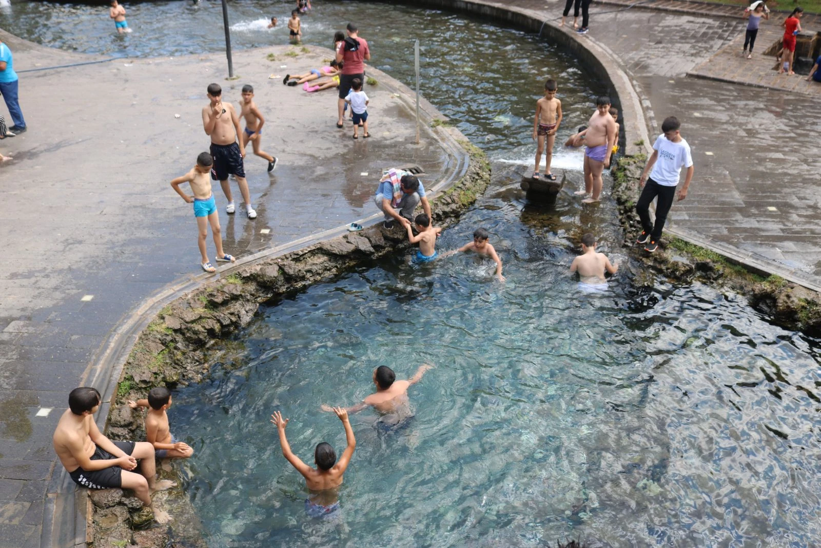 Kurban Bayramı ve sıcak havaları fırsat bilen çocuklar ise Sur ilçesindeki Anzele Parkı'nda süs havuzunda korona virüs tedbirlerini hiçe sayarak serinlemeye çalıştı. Çocuklardan Hasan Karagöz, sıcak havalardan bunaldıkları için Anzele Parkı'na geldiklerini söyledi. Karagöz, "Korona virüs hiç umurumuzda da değil. Korona virüs diye bir şey yoktur, çocuklar Anzele suyunu çok seviyor, Diyarbakırlılar da korona virüsü takmıyor. Hava çok sıcak olduğu için bizde gelip yüzüyoruz" dedi.